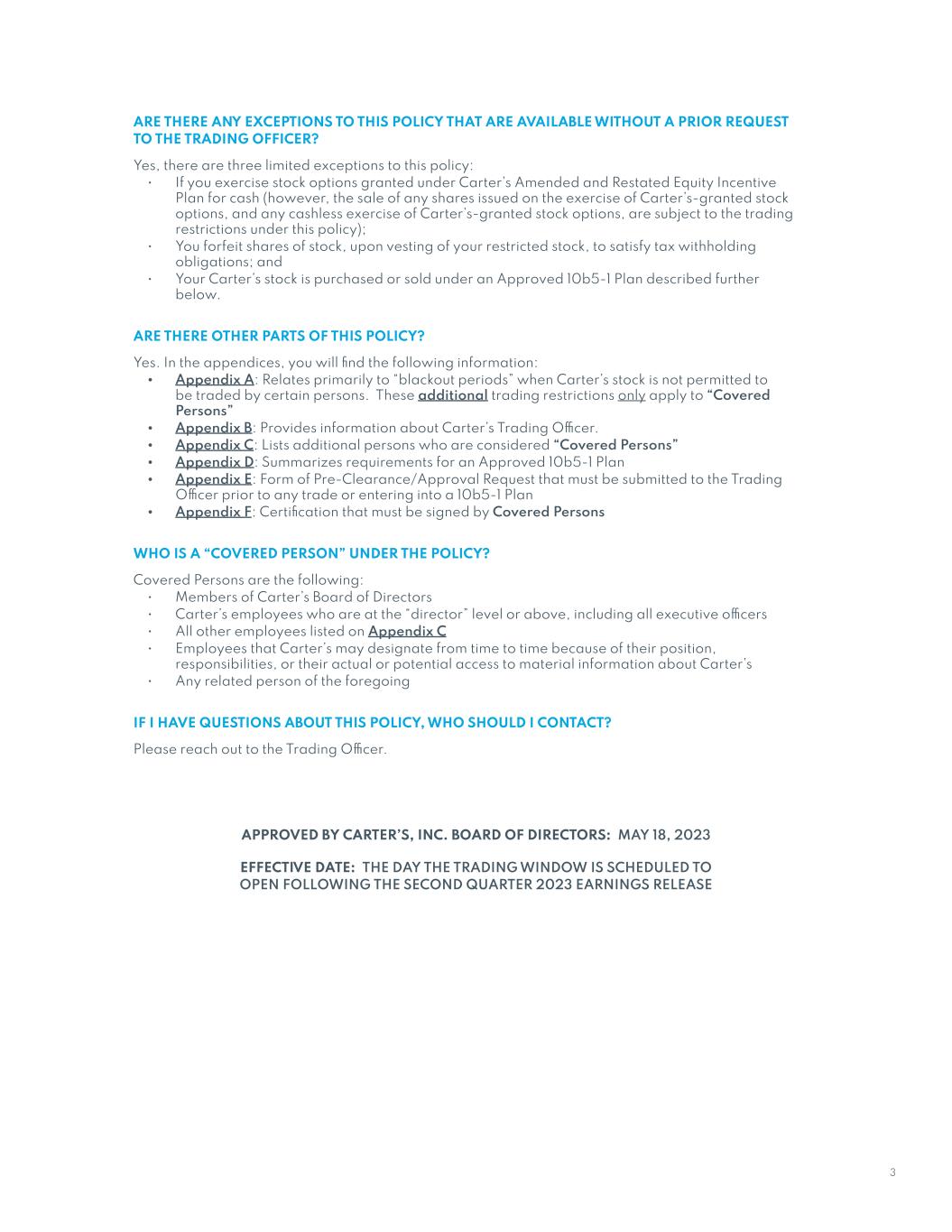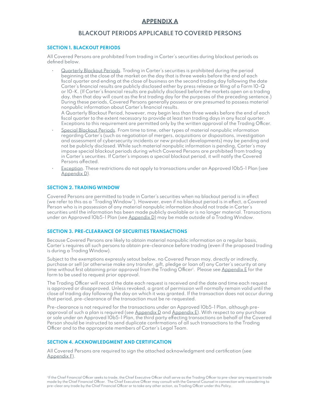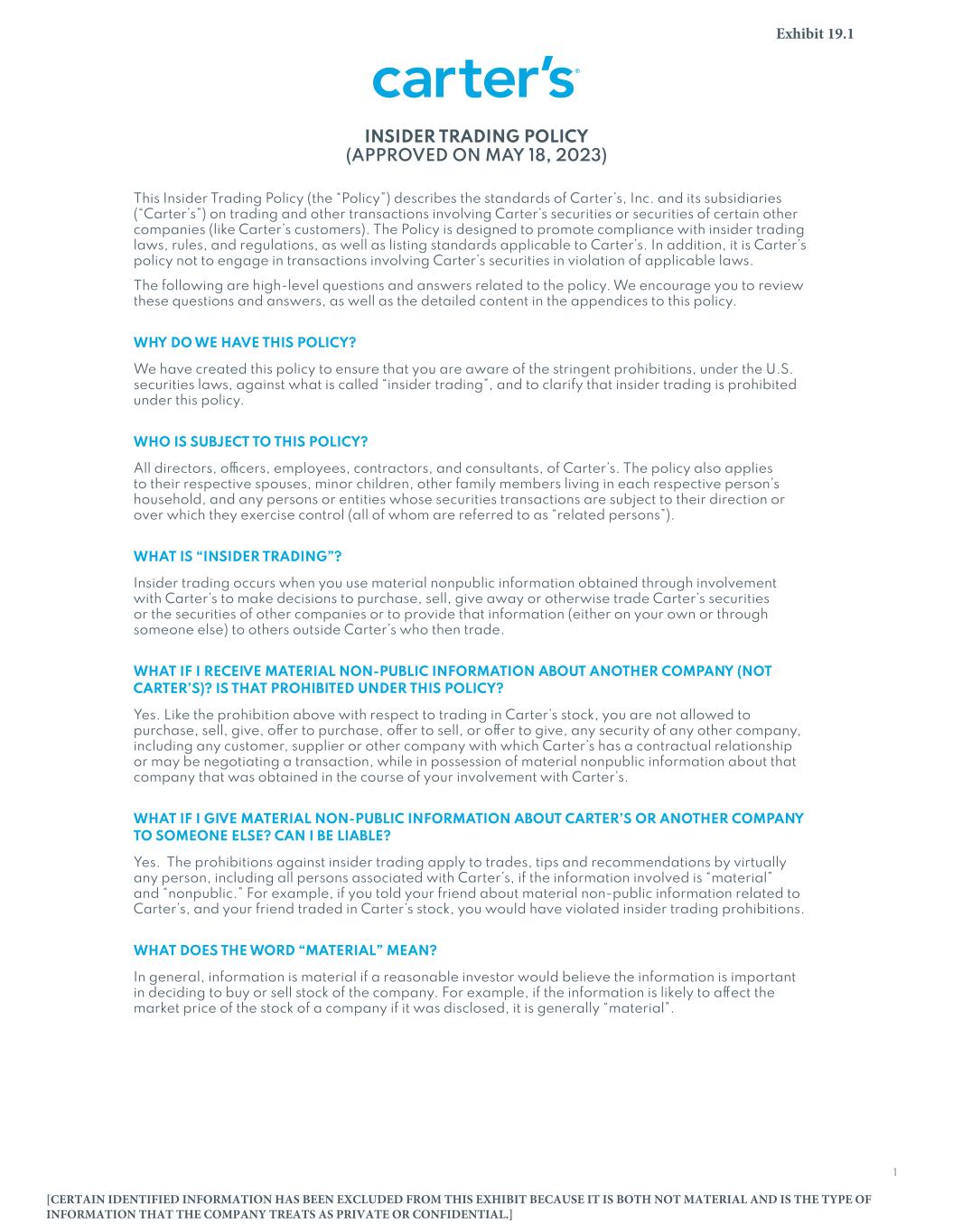 Unless the context indicates otherwise, in this filing on Form 10-K, “Carter’s,” the “Company,” “we,” “us,” “its,” and “our” refers to Carter’s, Inc. and its wholly owned subsidiaries.