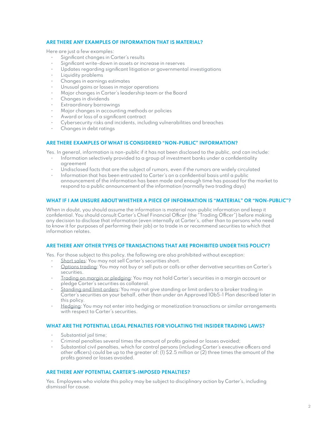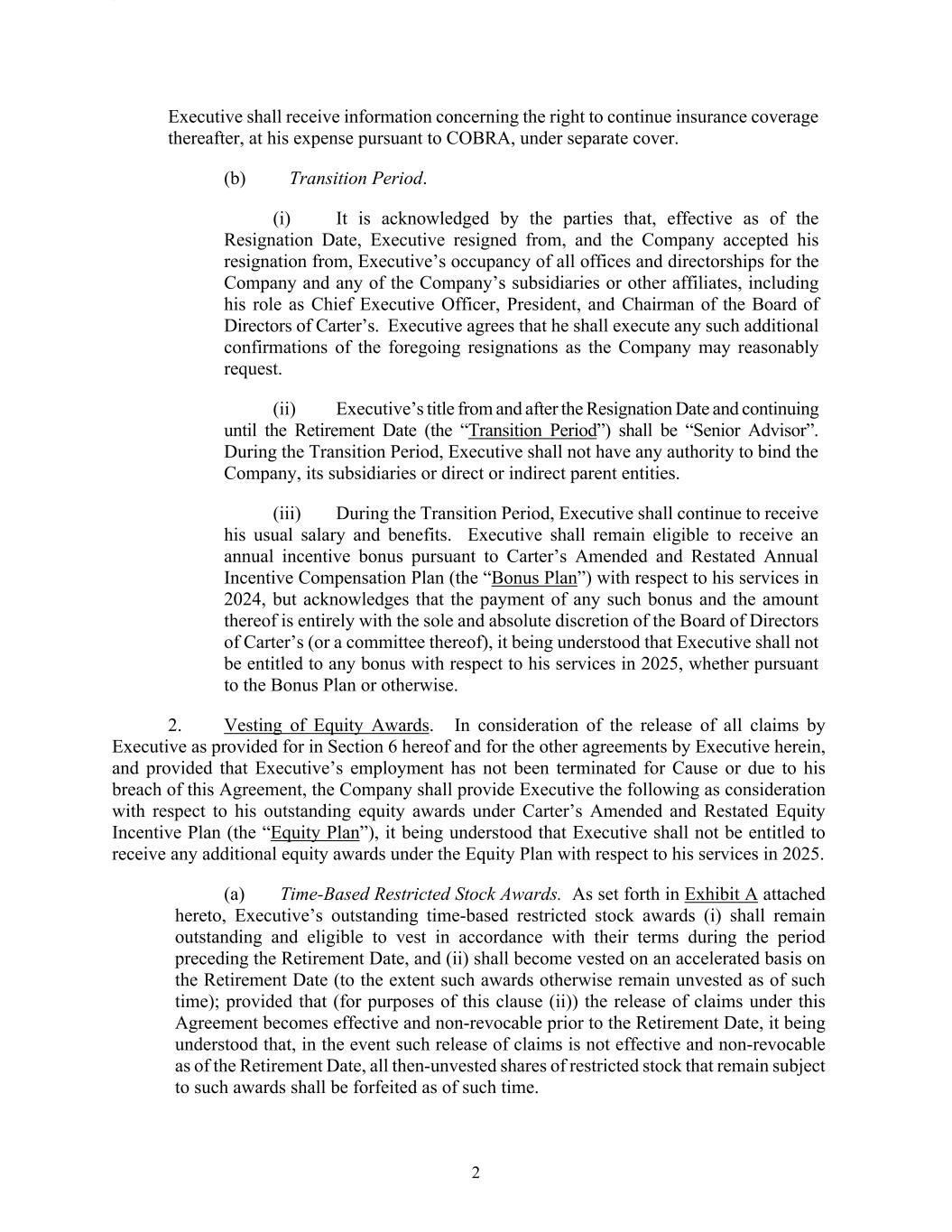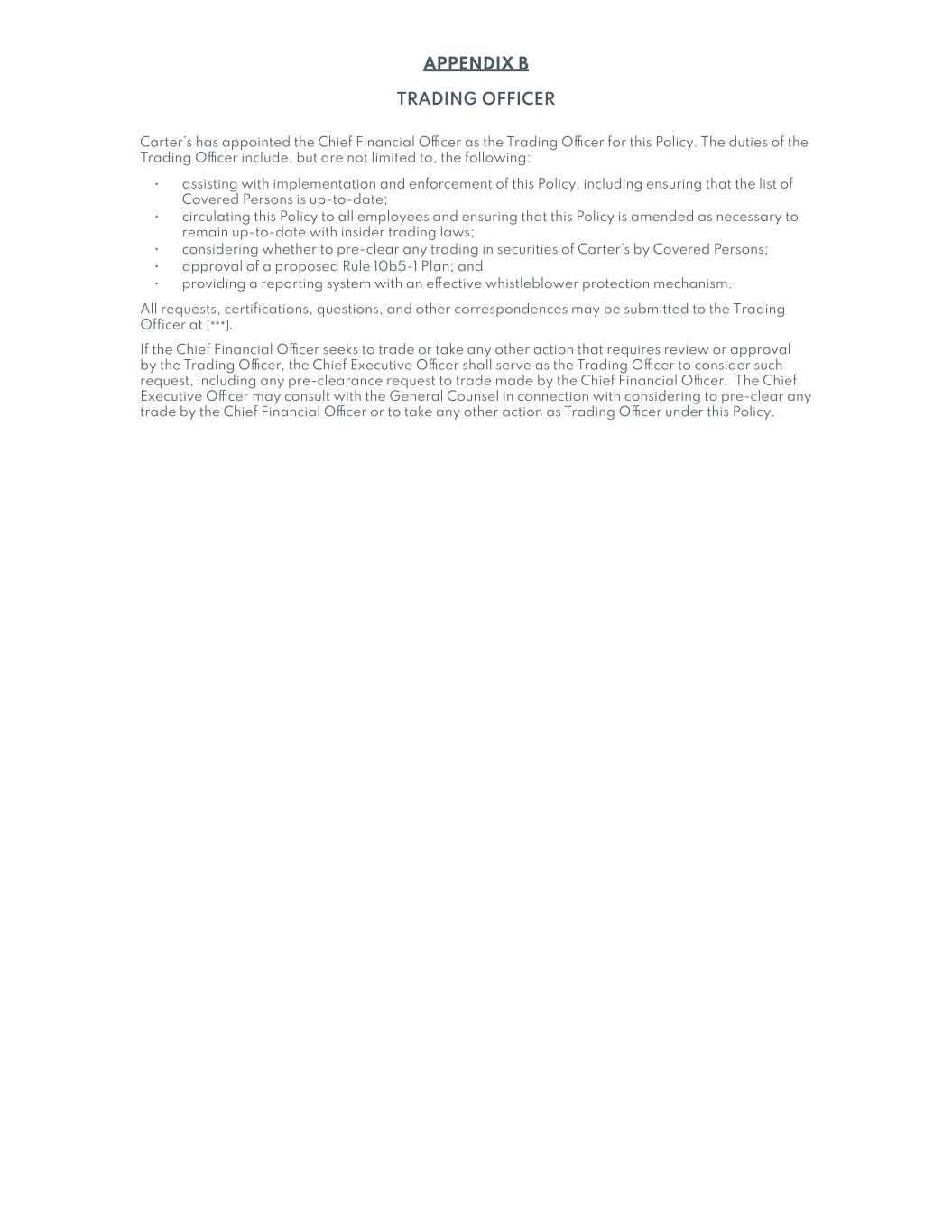 Unless the context indicates otherwise, in this filing on Form 10-K, “Carter’s,” the “Company,” “we,” “us,” “its,” and “our” refers to Carter’s, Inc. and its wholly owned subsidiaries.