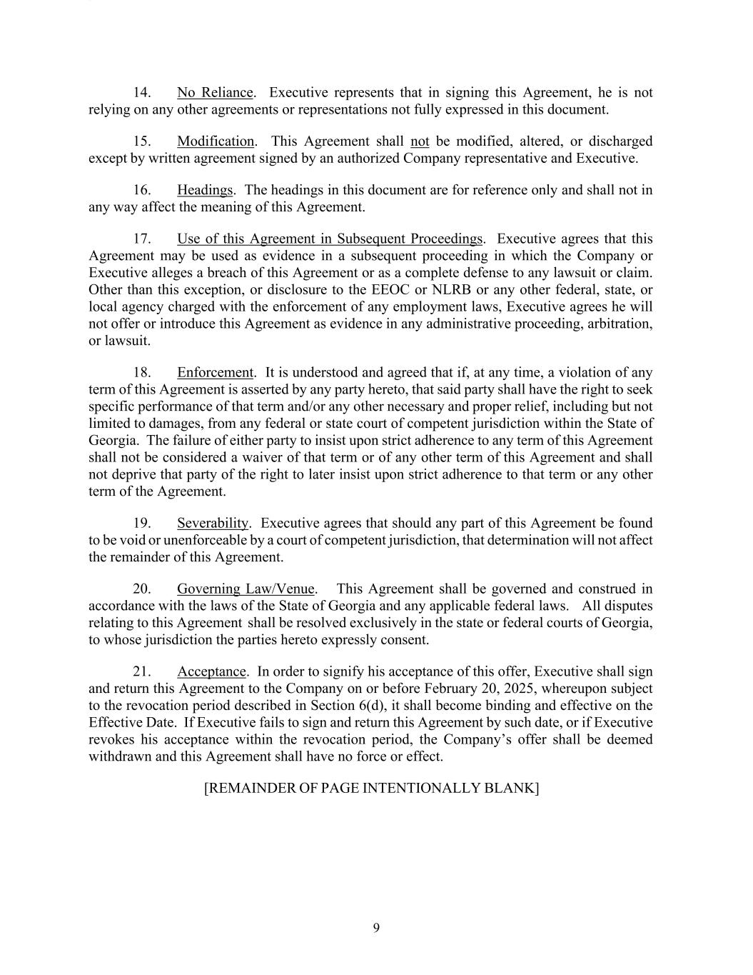 | /s/ RICHARD F. WESTENBERGER | Interim Chief Executive Officer, Senior Executive Vice President, Chief Financial Officer & Chief Operating Officer | February 25, 2025 |